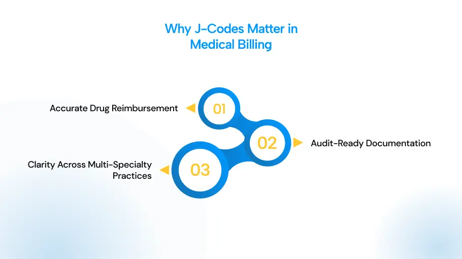 The financial impact of J-Codes extends far beyond data entry. They directly shape the reimbursement process by aiding in accurate drug billing, cleaner claims, and compliant documentation. Here’s what they help with at a high level: